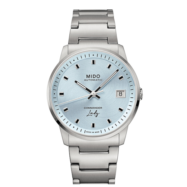 Zifferblatt: hellblau, Index, Edelstahlband mit Faltschließe,