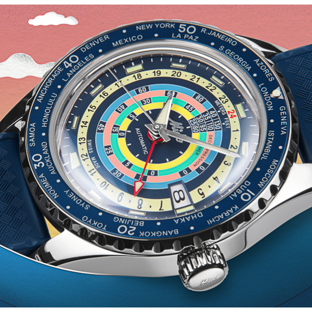 Zifferblatt: blau, 2. Zeitzone auf dem