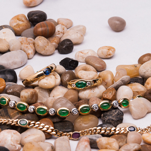 mit Smaragden und Brillanten.